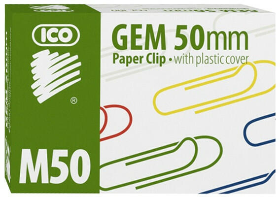 Kiváló minőségű ICO gémkapcsok, műanyag bevonattal ellátott, színes gémkapcsok. A doboz 100 darab gémkapcsot tartalmaz Mérete: 50 mm